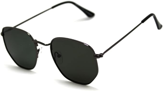 Óculos de Sol Hexagonal - Produto à pronta entrega - Altura da lente: 43mm - Largura da lente: 50mm - Largura da armação: 130mm - Comprimento da haste: 140mm - Material da armação: Metal - Material da haste: Metal - Proteção: UV400 - Garantia: Contra defeito de fabricação